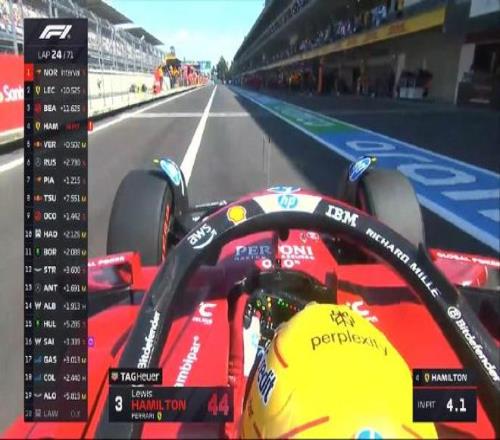 第二十四圈:漢密爾頓進(jìn)站接受10秒罰時并換上中性胎