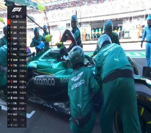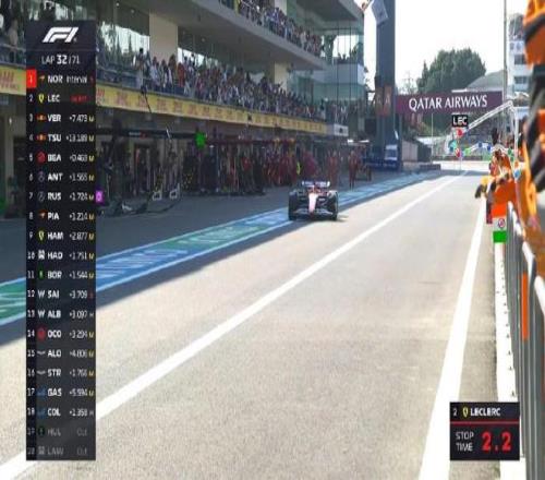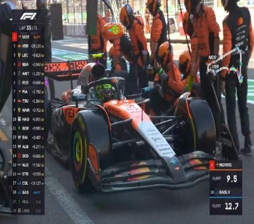 第三十五圈:領(lǐng)跑的諾里斯進(jìn)站換上中性胎,出站后他仍領(lǐng)先維斯塔潘8秒