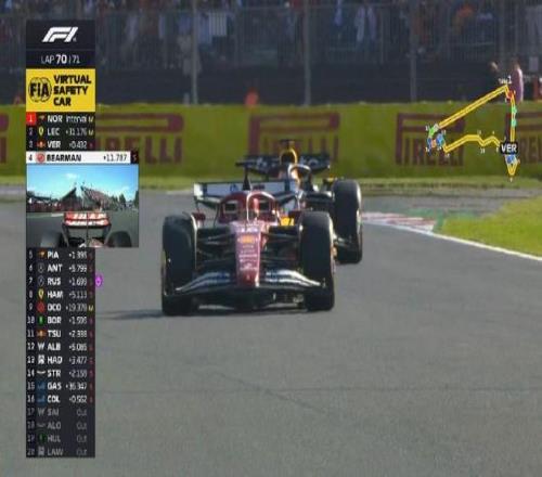第六十五圈:維斯塔潘追近勒克萊爾,皮亞斯特里也已經(jīng)很接近貝爾曼