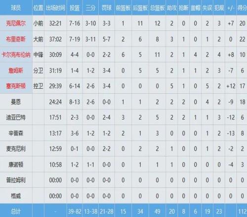 黃蜂全隊(duì)數(shù)據(jù)如下:
