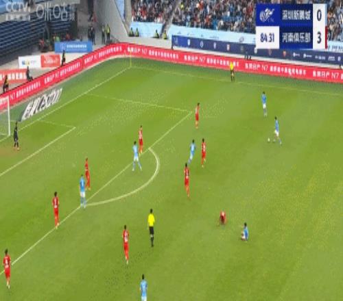 第5輪,深圳新鵬城1-3河南,楊一鳴禁區(qū)外精彩世界波直掛死角