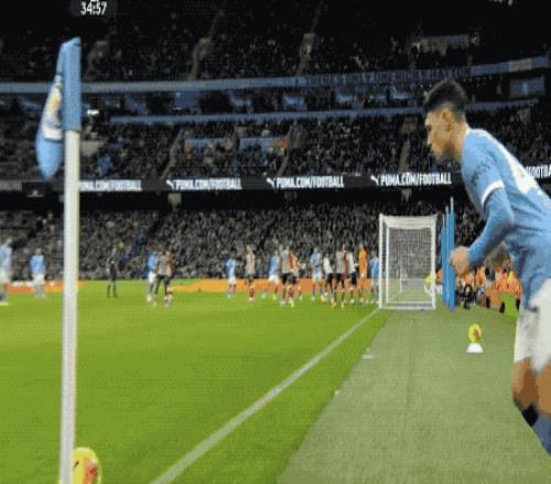 第34分鐘,曼城獲得角球,福登將球開出,格瓦迪奧爾高高躍起,頭槌破門。