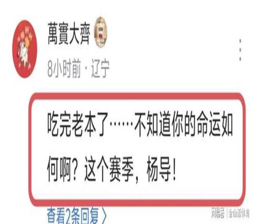 俱樂部杯賽早早出局,也令許多遼迷也感到非常失望,“吃完老本了……不知道你的命運(yùn)如何???這個賽季,楊導(dǎo)!”;“感覺至少5年內(nèi)遼寧是沒希望了”;“他就是cba的泰倫盧”;“你現(xiàn)在的首要任務(wù)是下去給烏戈當(dāng)助理”;“還扯蛋呢,繼續(xù)洗,睜著眼說瞎話”;“這哪是陣痛期,我都看不到希望,這是職業(yè)球隊(duì)的運(yùn)營么?有年輕球員儲備么?全靠吉林輸血?這批老將一下去新生代一個能打的都沒有,呵呵”……