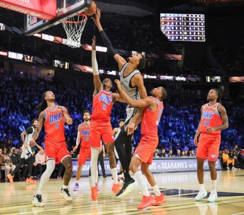 末節(jié)決戰(zhàn)進(jìn)入白熱化纏斗。馬刺開局取得6分領(lǐng)先,雷霆?jiǎng)t靠華萊士和卡魯索的三分追平比分,雙方展開拉鋸戰(zhàn)。末段雙方幾乎交替領(lǐng)先,分差在一球之內(nèi)懸念留到最后,決勝時(shí)刻馬刺這邊瓦塞爾和文班亞馬聯(lián)袂搶分幫助球隊(duì)拿到4分優(yōu)勢(shì)進(jìn)入讀秒奠定勝局。最終,馬刺力克雷霆,終結(jié)后者16連勝的同時(shí)殺入NBA杯決賽!
