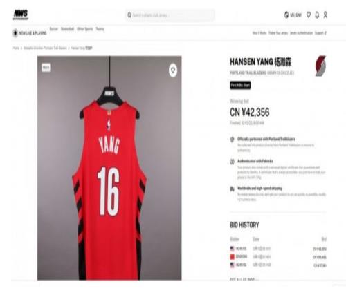 恭喜!楊瀚森NBA首次首發(fā)球衣被拍賣42356元商業(yè)價(jià)值不菲