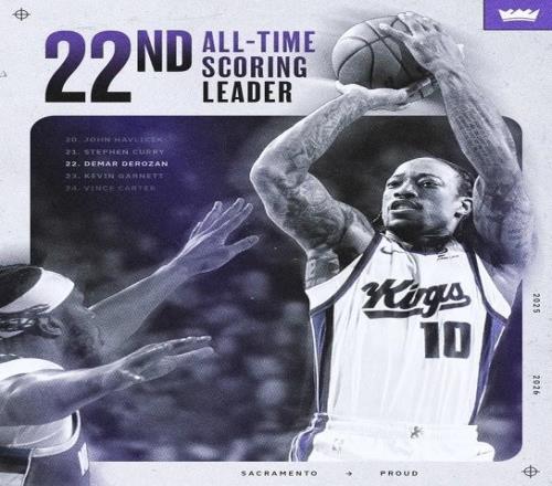 里程碑,德羅贊生涯總得分超越加內(nèi)特升歷史第22,身前是庫里