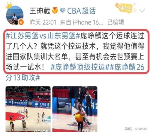 加時(shí)賽最后時(shí)刻,山東隊(duì)想犯規(guī),但“野球王”龐崢麟,持球從后場連過7人,帶球進(jìn)入前場山東隊(duì)才攔住他。賽媒體人王珅葳在社媒發(fā)文寫道:龐崢麟這個(gè)運(yùn)球連過了幾個(gè)人?就憑這個(gè)控運(yùn)技術(shù),我覺得他值得進(jìn)國家隊(duì)集訓(xùn)大名單,甚至有機(jī)會(huì)去世預(yù)賽上場試一試水!