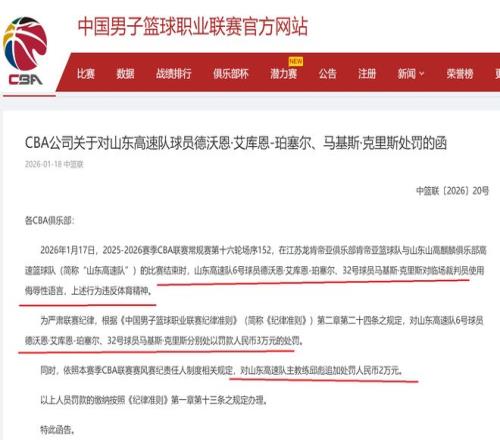 剛剛,CBA公司又開(kāi)出了一份大罰單,山東隊(duì)主教練邱彪+2個(gè)外援,一共有3個(gè)人被罰款,合計(jì)金額達(dá)到了80000元。